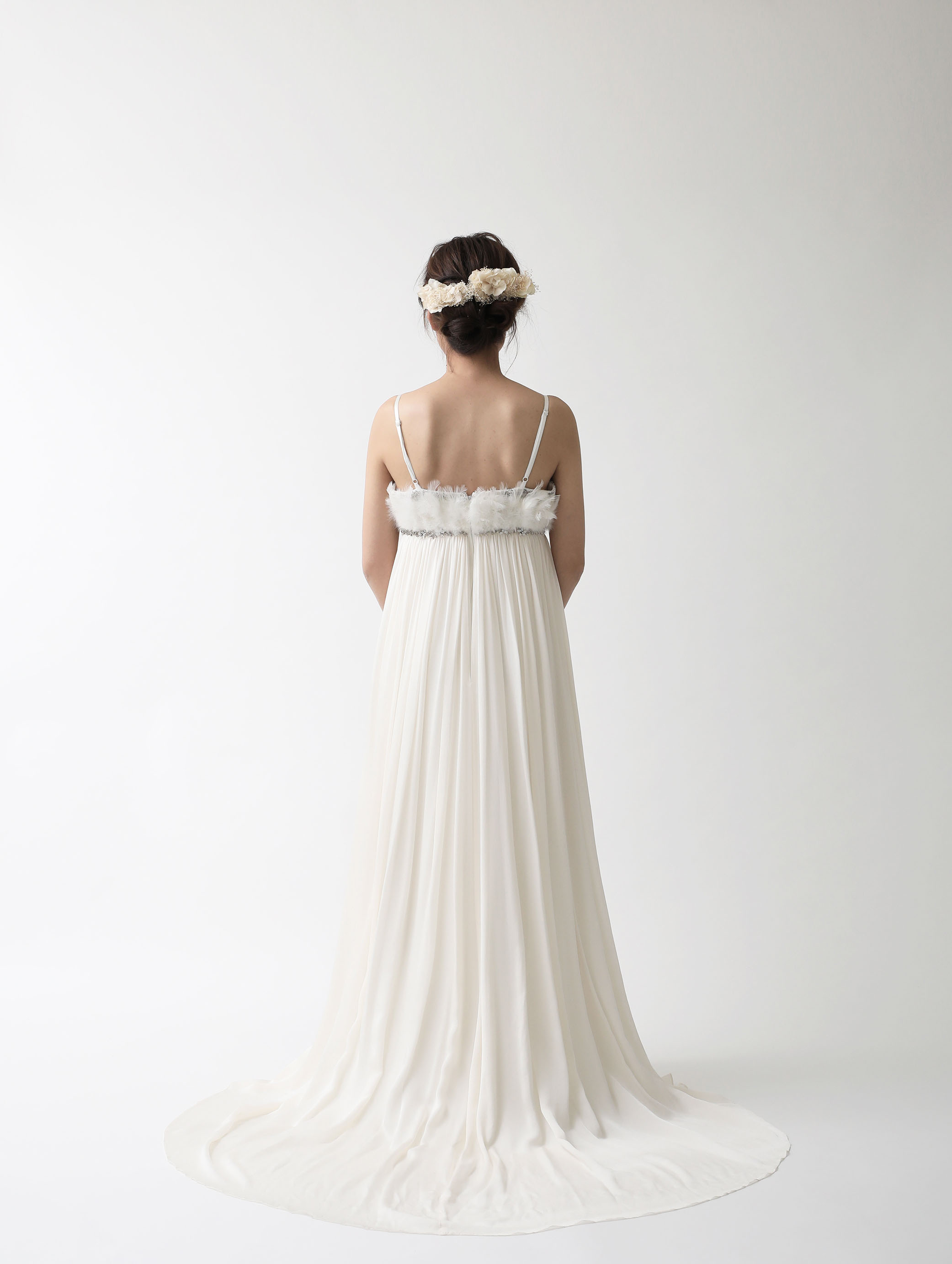 high-necked chiffon dress