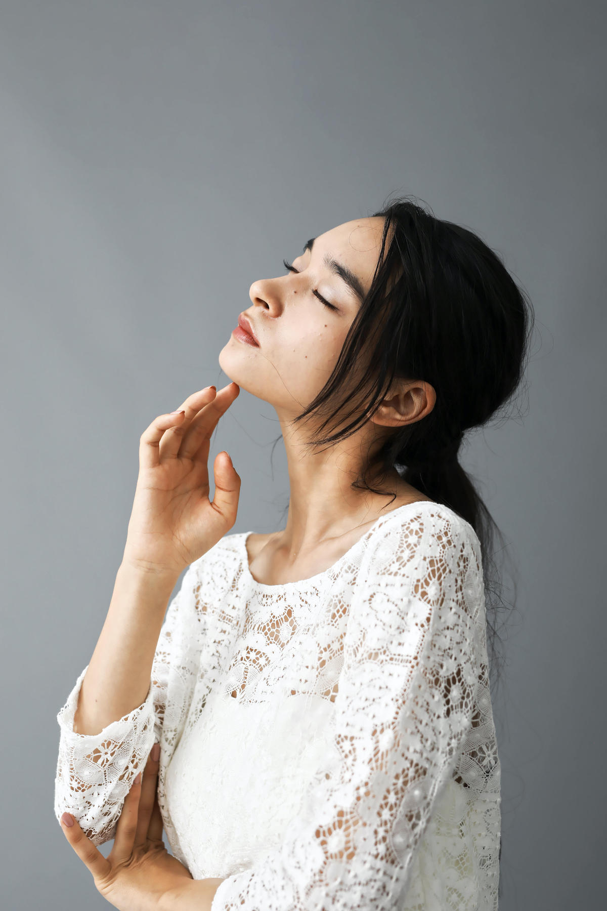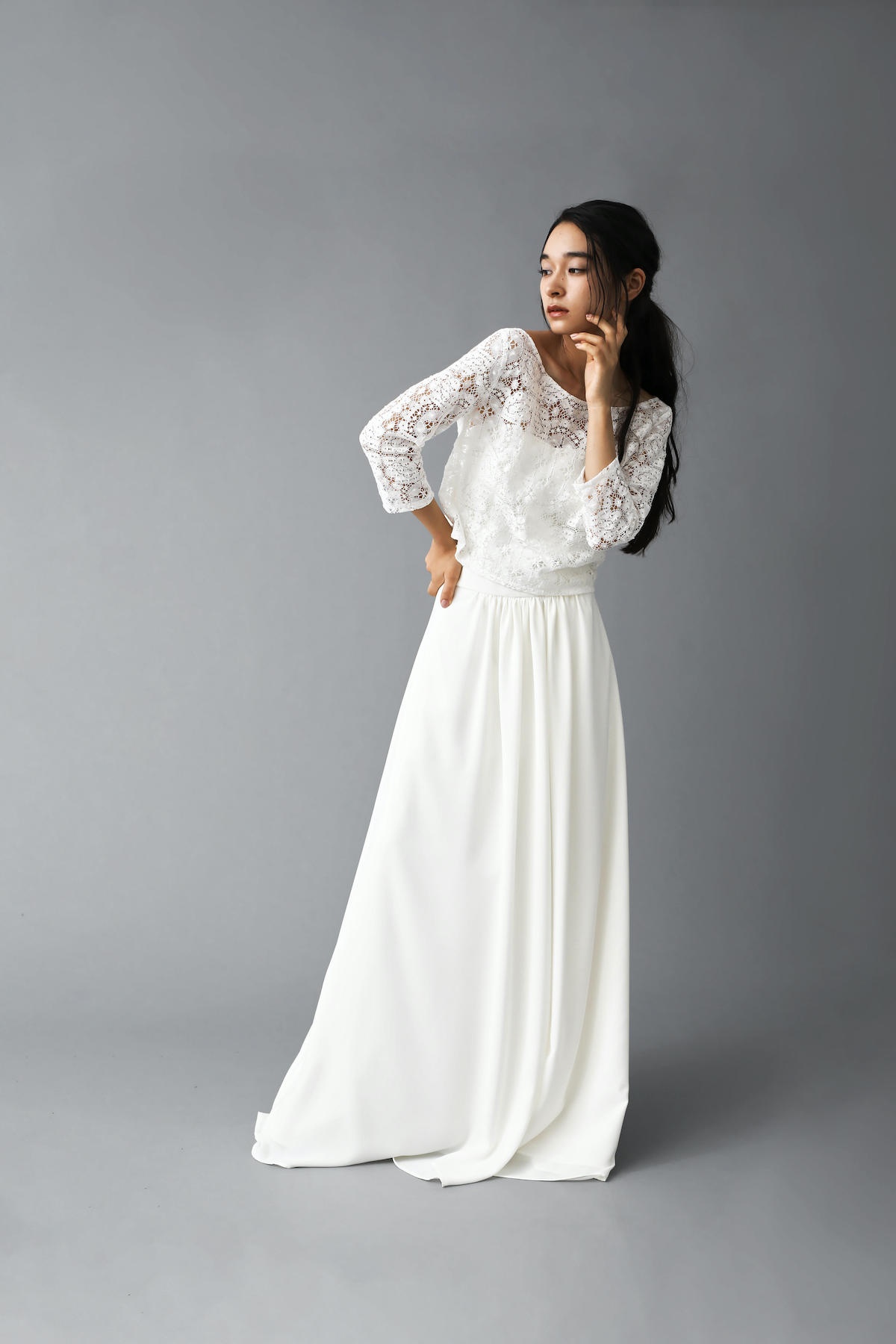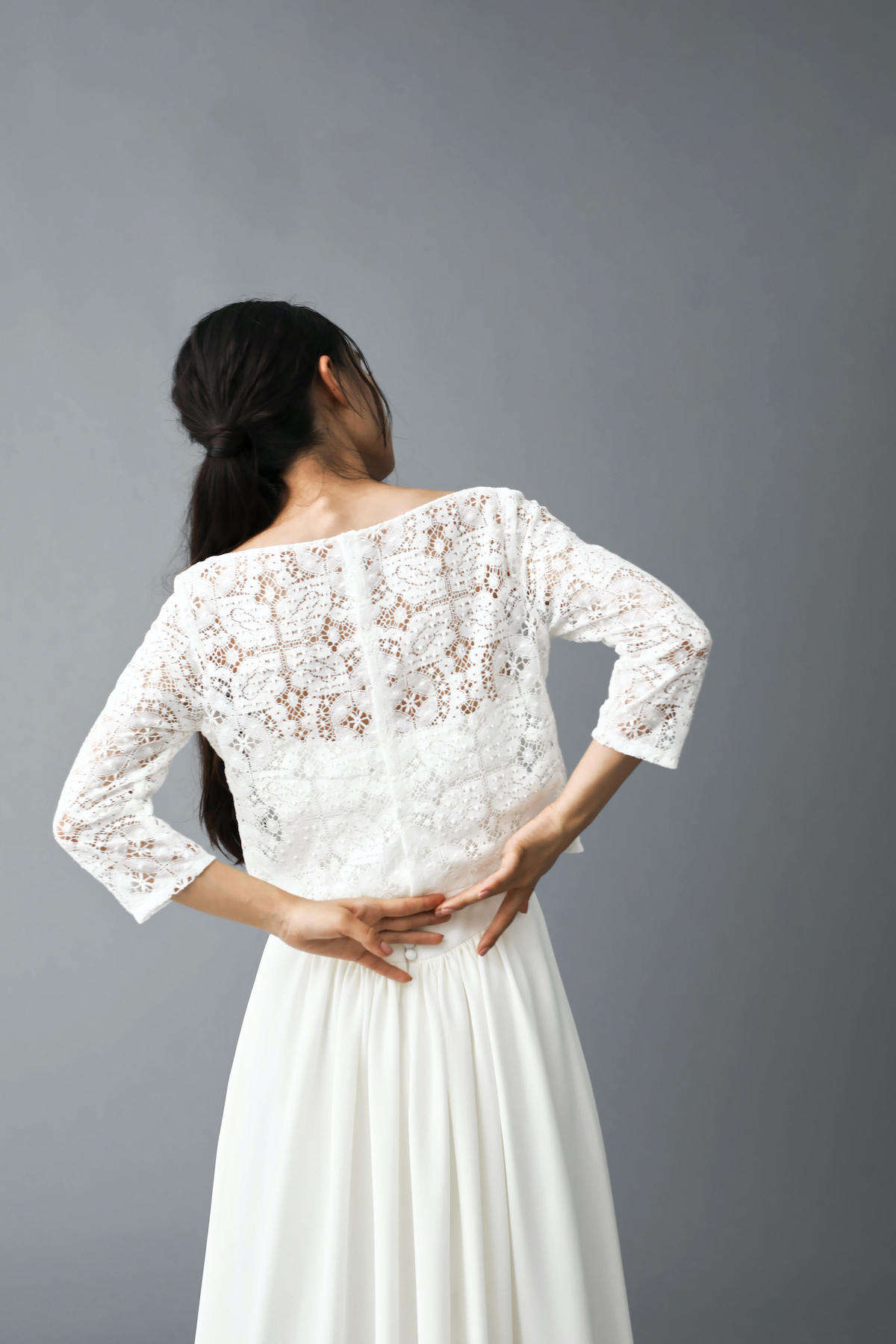 high-necked lace dress